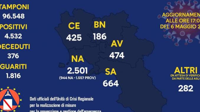 Il punto alle ore 23.59 di ieri e i casi totali positivi in Campania ripartiti per province: