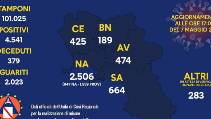 Il punto alle ore 23.59 di ieri dei casi positivi in Campania ripartiti per province: