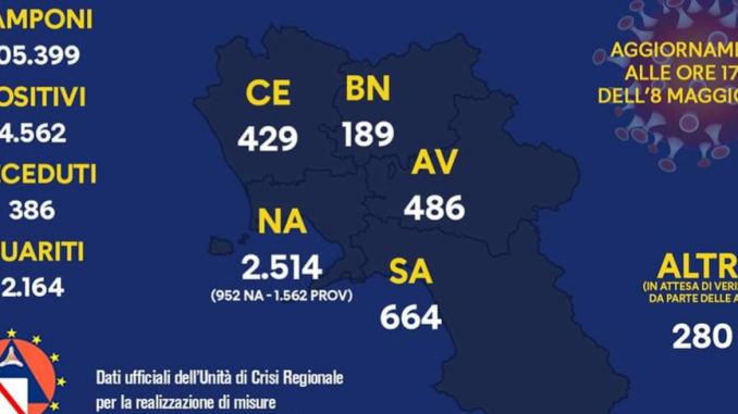 Il punto alle ore 23.59 di ieri dei positivi in Campania ripartiti per province di residenza:
