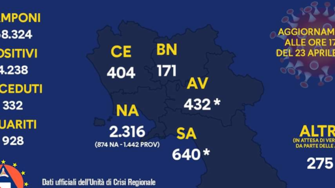 * Rispetto ai dati di ieri (aggiornamento del 22 aprile ore 17), 2 persone della provincia di Avellino e 1 persona della provincia di Salerno non sono state confermate positive dall’Istituto Superiore Sanità.