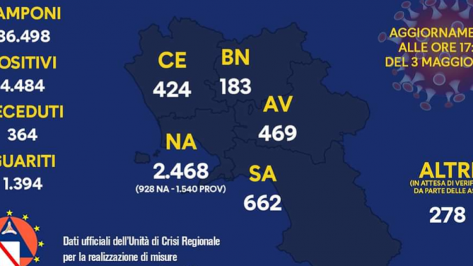 Il punto alle ore 23.59 di ieri con i casi riscontrati in Campania suddivisi per province: