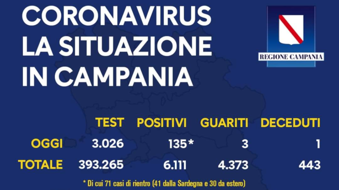 * Di cui 71 casi di rientro (41 dalla Sardegna e 30 da estero)