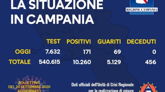 Altri 171 positivi in Campania, con un numero di tamponi comunque alto: più di 7500 in un giorno. Il dato realtivo al contagio resta alto dunque , ma aumenta anche il numero dei guariti: sono 69 quelli totalmente negativizzati nelle ultime 24 ore. Per fortuna poi non si registrano nuovi decessi.
