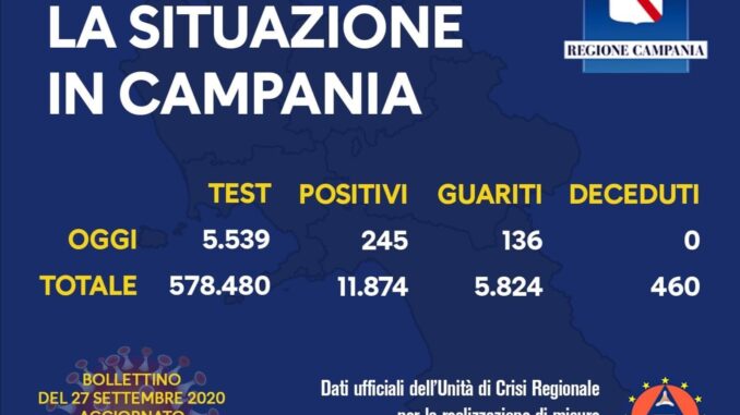 COVID-19, IL BOLLETTINO ORDINARIO DELL’UNITÀ DI CRISI DELLA REGIONE CAMPANIA