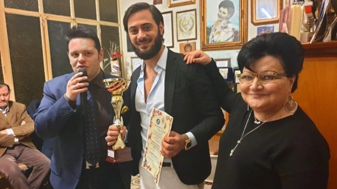 Un grande momento, indimenticabile, è stato quello di Fabio Toscano, che pomiglianese Doc, è diventato un attore brillante e drammatico nel film “E fu subito sera” girato a Hollywood in cui fa la parte del Talebano in una guerra di camorra. Già eletto “Il più bello d’Italia” per il suo fascino, è diventato famoso in America e girerà altri film che andranno in tutte le sale cinematografiche d’Italia e premiato al Salotto con pergamena d’onore e una coppa meravigliosa, il grande Fabio si è emozionato e ha parlato delle sue esperienze nel mondo del cinema.