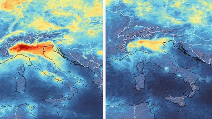 A marzo l’aria del Nord Italia è diventata nettamente più pulita in concomitanza con le misure di contenimento del coronavirus. Secondo le elaborazioni dei satelliti, evidenzia Giovanni D’Agata, presidente dello “Sportello dei Diritti”, le concentrazioni di diossido di azoto (NO2), un gas inquinante prodotto dalle attività umane, sono calate di circa il 10% ogni settimana, nel corso di quattro-cinque ultime settimane. A Milano, le concentrazioni medie di NO2 sono passate da 65 mg/m3 nel mese di gennaio a 35 mg/m3 nella prima metà di marzo. Questa riduzione può essere attribuita a diversi fattori, tra cui la diminuzione del traffico automobilistico e degli impianti produttivi, dovuta a sua volta allo stop alle attività e alle restrizioni sugli spostamenti per il coronavirus. Lo dimostrano le rilevazioni del servizio europeo Copernicus diffuse in questi giorni: sulla mappa pubblicata dall’Agenzia spaziale europea (ESA), si può constatare una riduzione delle aree rosse sulla pianura Padana da inizio gennaio al 10 marzo. Un effetto simile lo si era già osservato in Cina, dove le immagini della NASA avevano mostrato un miglioramento della qualità dell’aria in corrispondenza di un rallentamento delle attività economiche, legato alla quarantena per il Covid-19.