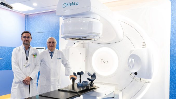 «Elekta EVO è il più recente sistema CT-Linac (o CT-Linear Accelerator), una tecnologia avanzata utilizzata in oncologia radioterapica che integra in un unico sistema una CBCT moderna basata su AI (CBCT, Cone Beam Computed Tomography) e un acceleratore lineare (Linac), segnando un passo decisivo verso una radioterapia sempre più personalizzata, precisa e accessibile», spiega il dott. Muto –Coordinatore Radioterapia Oncologica Consorzio Emicenter-. Il progetto EVO nasce dalla richiesta della comunità scientifica di sviluppare un acceleratore lineare in grado di effettuare radioterapia adattiva basata su immagini CBCT, sinora possibile solo con sistemi dedicati come ad esempio quelli basati su risonanza magnetica. Dopo un lungo percorso di ricerca e sviluppo, il nuovo dispositivo rappresenta oggi la più recente innovazione della casa svedese Elekta nel campo della radioterapia di precisione.
