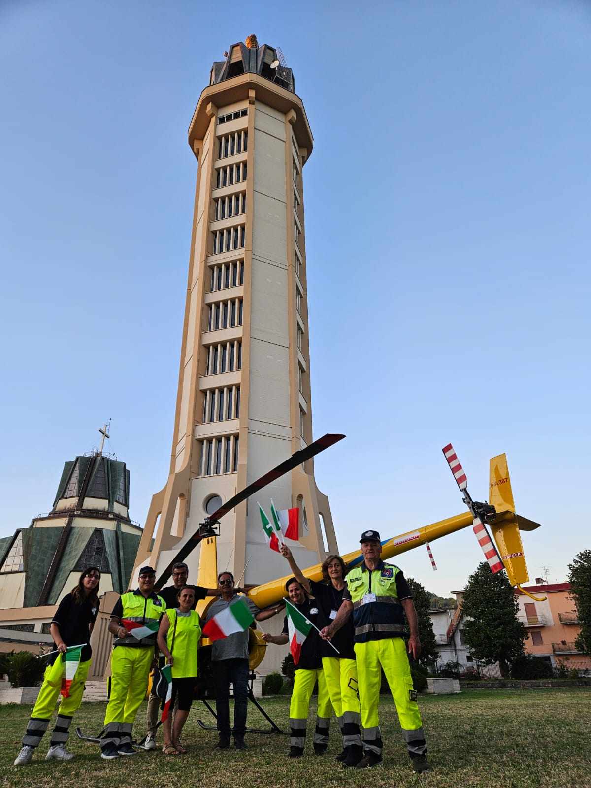Le operazioni di atterraggio e ripartenza dell’elicottero sono state gestite con grande professionalità dalla Protezione Civile A.T.A.P.C di Visciano. Il loro impegno ha assicurato che tutto si svolgesse in sicurezza, permettendo ai partecipanti di vivere l’esperienza in serenità e raccoglimento.