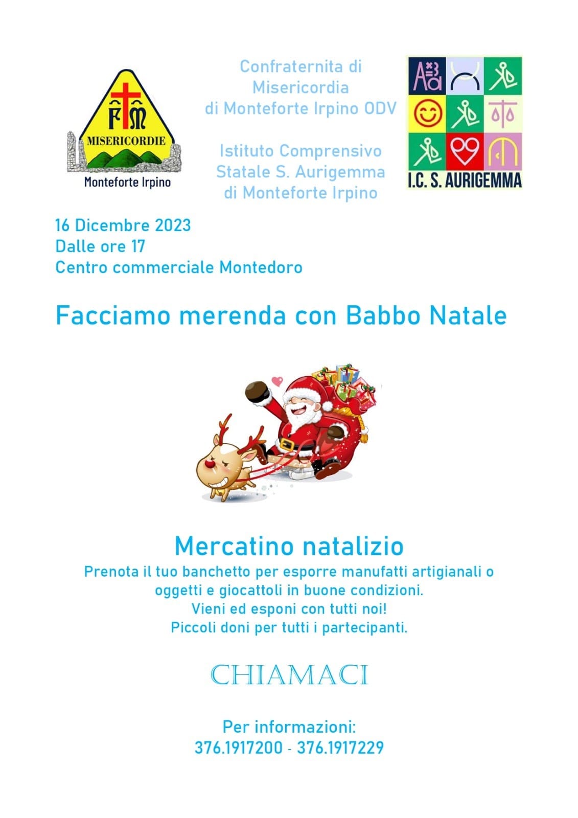 Per ulteriori informazioni e per prenotare il tuo banchetto, puoi contattare la Confraternita di Misericordia di Monteforte Irpino ai numeri 3761917200 o 3761917229. Partecipa a “Facciamo merenda con Babbo Natale” e regala alla tua famiglia un momento di gioia, dolcezza e solidarietà in questa magica stagione natalizia.