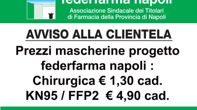 Da oggi, dunque, i cittadini napoletani troveranno le mascherine chirurgiche al prezzo di €1,30 (al momento il prezzo varia tra 1,5 e 2 euro) e le mascherine modello FFP2/Kn95 al prezzo di €4,90 (a fronte di un prezzo che oscilla tra i 6 e gli 8 euro), in tutte le farmacie aderenti di Napoli e provincia, evitando così quella “caccia” all’offerta migliore da parte dei cittadini. Dopo tante polemiche su quotidiani, Tv, siti web e, soprattutto, social in riferimento al prezzo di vendita al pubblico delle stesse, le farmacie napoletane, lanciano in questo modo un messaggio di trasparenza e di “servizio sociale” alla cittadinanza.