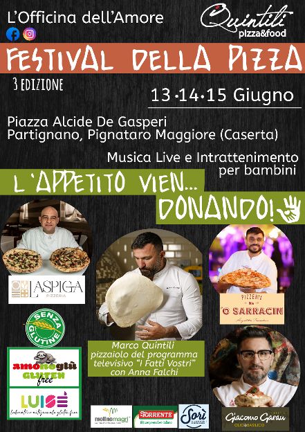 L’Associazione L’Officina dell’Amore APS presenta con orgoglio la terza edizione del “Festival della Pizza”, che si terrà nelle serate del 13, 14 e 15 giugno 2025 presso Piazzetta Alcide De Gasperi (località Partignano), Pignataro Maggiore (CE).