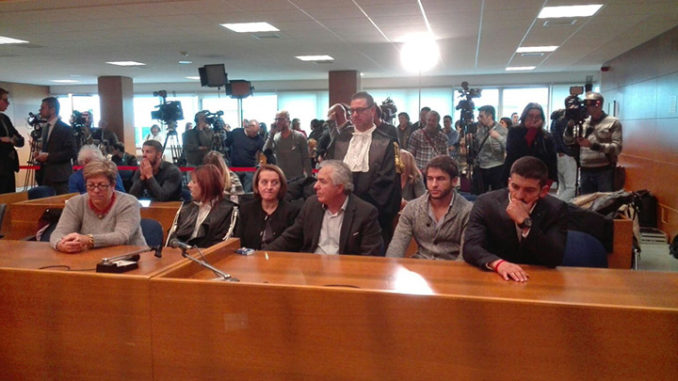 Affiancato dai difensori, gli avvocati Giuseppe Esposito e Roberto Rigoni Stern, Ruotolo ha ascoltato la lettura del dispositivo soffocando le lacrime. Alle sue spalle, con il volto chino e contrito,il padre Alfonso e il fratello Giovanni. Sul banco opposto, il pm Pier Umberto Vallerin e tutti i legali di parte civile, che hanno visto pienamente accolte le rispettive richieste di condanna e risarcimento dei danni.