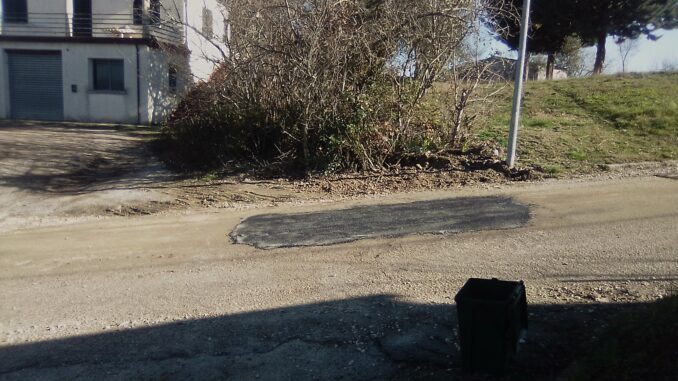 A distanza di pochissimi giorni dalla forte nevicata, che aveva imbevuto il materiale di riempimento dello scavo eseguito, sullo stesso, è stato posto un manto di asfalto, che dopo tre giorni si è in parte già sgretolato.