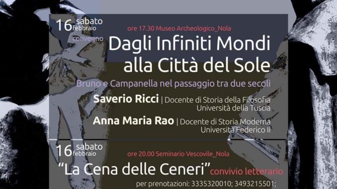 Il presidente della fondazione Hyria Novla Felice Scotti: “occorre un’azione sinergica con le istituzioni ed il mondo accademico per restituire il giusto valore all’uomo che è stato, e rappresenta oggi, Giordano Bruno in Italia e nel mondo”.“Promuovere la cultura nolana valorizzando quelle figure che da sempre ne rappresentano l’identità attraverso azioni che ne esaltino le espressioni più rappresentative che siano da esempio per le nuove generazioni. Ecco perché come fondazione Hyria Novla abbiamo deciso di inserire nella nostra programmazione ‘le giornate bruniane’ organizzate dall’associazione Giordano Bruno presieduta da Paolino Fusco, sostenendo il nobile progetto culturale”. Con queste parole l’avvocato Felice Scotti, presidente della fondazione Hyria, commenta le iniziative che oggi e domani interesseranno la città di Nola in occasione dell’anniversario della morte del filosofo nolano. Una due giorni per una riflessione ad ampio raggio sul pensiero di Bruno con la presenza di esperti in materia a cominciare dai docenti universitari Saverio Ricci ed Anna Maria Rao. L’appuntamento è per le 17.30 di oggi nel salone del museo storico archeologico di Nola. Domani invece, nel giorno in cui 419 anni anni fa Bruno moriva arso vivo in Campo de’ Fiori a Roma, si terrà il consueto omaggio ai piedi del monumento in piazza Giordano Bruno in sinergia con l’amministrazione comunale, che ha patrocinato le iniziative, e con la presenza del sub commissario prefettizio Mario Ambrosanio.