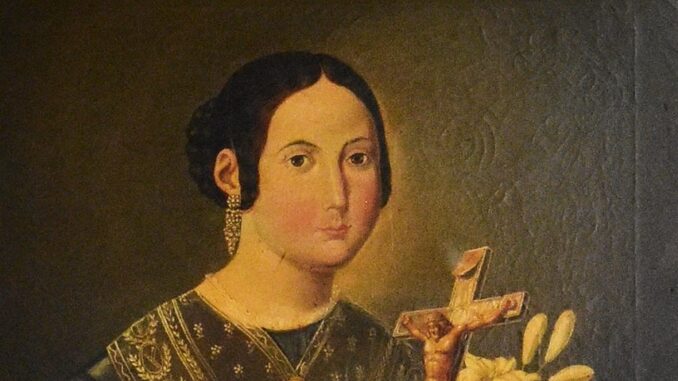 Riscoprendo la secolare storia di Forino, capita a volte di trovarsi difronte a figure luminose, che scritti e scrittori coevi ed antichi o per distrazione, o per dimenticanza, non ne hanno trasmesso il ricordo alle future generazioni. È il caso di Donna Maria Fanelli nobile giovane dalle speciali virtù vissuta negli anni 30′ del 1800. Donna Maria Domenica Fanelli nacque a Forino l’ 11 febbraio 1828, figlia di Domenico Fanelli che ella mai vide perché deceduto tre mesi prima della sua nascita e di Francesca Picella che la consacra alla Santissima Vergine. Entra adolescente nell’educandato del Monastero del Carmine in Avellino per ricevere una raffinata e completa formazione che condivide con gioia e felicità. Con il passare degli anni cresce nel fervore, nell’ubbidienza, nella purezza e nell’umiltà. Sceglie anche la via ardua di penitenze occulte e cilizi nascosti fin quando un giorno, pallida e tremante, esce in fretta dal refettorio e rientrata in cella si abbandona sulla sedia. La priora scopre in questa circostanza il corpo martoriato della bellissima fanciulla, ma ai rimproveri dei suoi familiari ella risponde: ” Sappiate che io sono entrata in questo monastero per condurre una vita austera e penitente e preparami a lasciare questo mondo per consacrarmi totalmente a Dio”. Paziente, devotissima della Madonna del Carmine e delle anime del Purgatorio, con grande devozione segue la vocazione alla verginità per il Regno dei Cieli. Nata ricca, si fa povera tra le povere. Ma un’ affezione reumatica con febbre la costringe, sotto consiglio del medico, a ritirarsi per un po’ di tempo in paese per respirare la salubre aria della sua terra natia. Con grande rincrescimento l’amabile giovine esce dal monastero, nella speranza di recuperare al più presto la buona salute. L’indisposizione reumatica però non si arresta ed è costretta a rimanere a letto. Si riuniscono in consulto diversi medici: Giuseppe Amabile di Avellino, Pietrantonio Vegliante di Atripalda, Domenico De Lauro di Forino, suo cugino Giovanni Fanelli, Giovanangelo Pescadore di Serino, Pietro Falcone di Napoli e il rinomatissimo Leopoldo Chiara. Gli illustri medici comprendono l’aggravamento della situazione a motivo dell’epatite e della polmonite. La costernazione della madre e dei familiari è grande. Il fratello sacerdote don Marcello le somministra con perizia i farmaci. Tutto il paese si mobilita e prega per la sua guarigione, ma la situazione precipita. Maria Domenica si confessa con padre Sanmmartino dei domenicani e poi ancora con padre Michele da San Severino Francescano e riceve l’Eucaristia come viatico dal parroco don Emidio Violante.