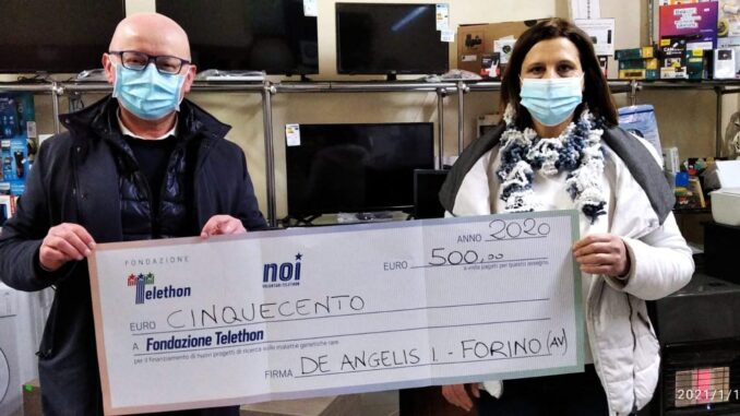 Da anni Forino e la sua gente nel periodo delle festività natalizie, offre il suo impegno, la sua solidarietà per la Raccolta Telethon portata avanti ed organizzata dal delegato locale signor Gianluigi Liguori. Quest’ anno dopo venti, causa Covid non è stato possibile, ma il “cuore” Telethon non ha smesso di battere nella Terra dei Sette Colli. E così che Liguori in accordo con un amato e noto imprenditore locale Mario De Angelis, nel rispetto delle norme Covid, hanno organizzato presso la rivendita di elettrodomestici dello stesso De Angelis, una piccola raccolta fondi che ha portato in dote alla ricerca la cifra di 500.000 euro. Niente, in confronto ai quasi SETTE/ OTTO MILA euro degli altri anni, ma pur sempre una fiamma che continua ad ardere aspettando tempi migliori. Non potevano mancare i ringraziamenti da parte del Presidente Telethon Irpinia – Sannio Agostino Annunziata. Ecco di seguito: “Quest’anno, i nostri straordinari sostenitori di Forino (Av), guidati dall’amico Gianluigi Liguori, hanno molto sofferto per la mancanza delle innumerevoli occasioni in cui, soprattutto in questo particolare periodo dell’anno, sin dal 2007 si raccoglievano fondi per la ricerca scientifica sulle malattie genetiche rare. Causa pandemia, non è stato possibile organizzare i tradizionali banchetti in piazza, sono mancati gli eventi scolastici, gli spettacoli musicali, di danza e perfino la tradizionale cena del 5 gennaio che chiudeva simbolicamente la Maratona Telethon locale. Tutte occasioni in cui, certamente, ci si divertiva ma con lo sguardo fisso su un unico obiettivo: aiutare la ricerca Telethon. E lo hanno sempre fatto, portando nei nostri istituti di ricerca, diverse decine di migliaia di euro.