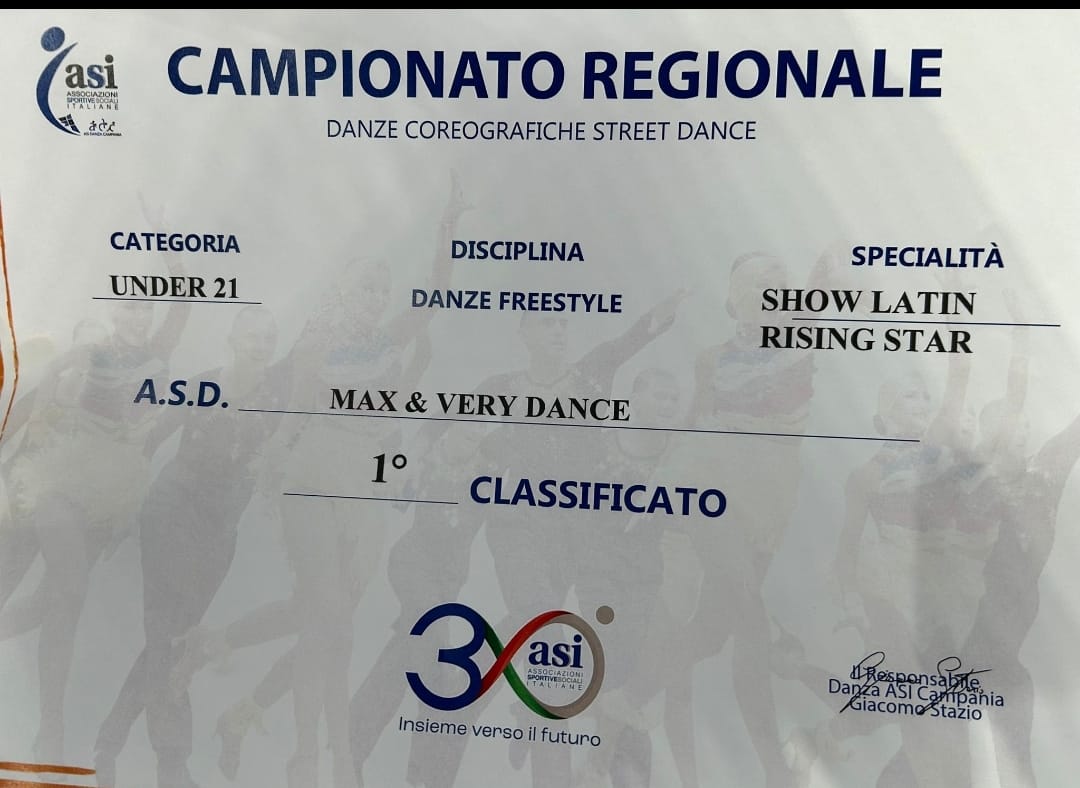 Il cielo di Forino si tinge di bellezza , cosi come lo sono le quattro allieve ballerine Maria Luisa Avagnano, Marianna Di Padova, Alessia Musto e Benedetta Tufano che al PalaVesuvio di Napoli hanno realizzato , avverato , un sogno per loro stesse e per la Max e Very Dance portando a casa un meritatissimo Primo Posto al Campionato Asi Regionale di Danze Coreografiche Street Dance per la Categoria Under 21 . La Maestra di Danza Cristina Bruno , la Max e Very Dance del Duo Picariello – De Angelis si coccolano soddisfatti le loro allieve e si gongolano sull’ onda di questo strepitoso successo, che segue quello raggiunto dalle stesse allieve con un magnifico Primo Posto ottenuto ai Campionati Regionali di Danza Sportiva nel marzo 2023. Un successo che viene però da molto lontano , preparato con tanti sacrifici dalle allieve ballerine e dalla Maestra Cristina Bruno . Un Primo Posto che davvero deve inorgoglire anche la cittadina di Forino per il fatto che le giovani allieve ballerine, andandosi a contendere il titolo con moltissimi sodalizi provenienti da ogni parte della Regione hanno portato in alto il nome della stessa Forino e per di più sul piu’ alto gradino del podio regionale Ad Majora
