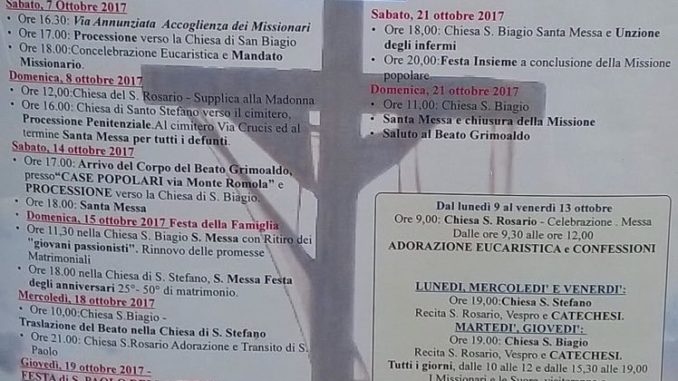 Tra pochi giorni Forino, diverrà terra di elevata religiosità spirituale, grazie alla celebrazione della Missione Popolare Passionista evento storico, civile, ecclesiastico e vetrina d’onore per la disincantata cittadina irpina. Per l’occasione, oltre alla partecipazione di notabili personalità religiose, militari, politiche e del mondo della cultura regionale, vedrà l’immancabile presenza delle gemme più preziose della sua terra, il suo futuro bambini e ragazzi dell’Istituto Comprensivo Picella Botto i quali daranno, con il corpo docenti preziosa linfa costruttiva al buona riuscita del Sacro Evento. Al dunque il Dirigente Scolastico dott. Carmine Iannaccone per il tramite della valente prof.ssa Trerotola Vincenza, in sintonia con il presule Padre Marco Masi, per far cogliere appieno agli scolari forinesi, il vero senso, l’importanza di quanto si andrà a vivere in quei giorni, hanno indetto per la Scuola Primaria e la Secondaria di Primo Grado un “CONCORSO DI DISEGNO” sia per classe che per alunno, con tema” LA SANTITÀ DEL BEATO GRIMOALDO STUDENTE PASSIONISTA” con diversi premi in palio che verranno consegnati ai vincitori domenica 22 Ottobre nella Chiesa di San Biagio alla presenza del Vescovo di Avellino e di altri alti prelati. Ma questa iniziativa non è solo l’unica messa in campo dalle istituzioni scolastica-religiosa forinese, visto che i gli studenti presiederanno quasi a tutti gli appuntamenti religiosi previsti, in particolar modo alle liturgie di lunedì 16 Scuola Media, martedì 17 Scuola Primaria, mercoledì 18 ottobre Scuola dell’Infanzia con celebrazioni di sante messe con panegirico ed altre importanti attività ludico scolastiche programmate. Dunque istituzioni quella scolastica del Dirigente Carmine Iannaccone e quella religiosa del reverendo Padre Pierluigi Mirra che facendo dote, di collaborazione ma soprattutto sensibilità e senza alcun trascendentalità doneranno a questi pargoli ed alle loro famiglie un momento socio, religioso, culturale unico, raro ,irripetibile di quei valori che ringraziando davvero il cielo sono da queste parti una delle poche cose su cui ancora si può credere e scommettere . DANIELE BIONDI.