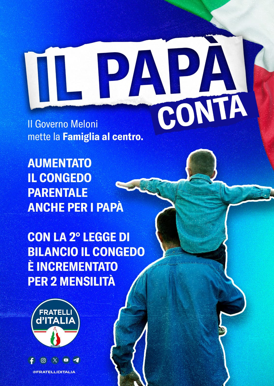 L’evento, intitolato “Il Papà Conta”, si terrà Martedì 19 marzo 2024, dalle ore 16:00 alle ore 19:00, presso il Corso Vittorio Emanuele II, all’altezza di Via Dalmazia. Il Gazebo sarà uno spazio dedicato alla diffusione di materiale informativo e propagandistico riguardante l’importanza del ruolo paterno nella società contemporanea.