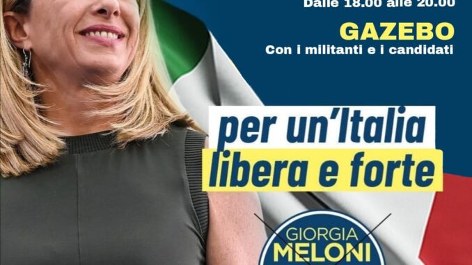 Entra nel vivo la campagna elettorale di Fratelli d’Italia. Dopo anni di giochi di Palazzo per evitare di dare la parola ai cittadini noi siamo pronti. Il 25 settembre Siamo pronti a risollevare l’Italia con un governo forte e unito che faccia gli interessiamo della Nazione e degli italiani.