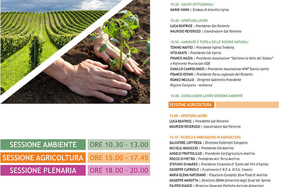 Gli interventi strategici del Gal Partenio a favore dell’innovazione in agricoltura e a tutela dell’ambiente”, questo il titolo della giornata i cui si svolgeranno in due sessioni, una mattutina (10.00– 13.00) in cui si parlerà di ambiente e tutela delle risorse naturali ed una pomeridiana (15.00 – 17.45) nel corso della quale si discuterà di ricerca e innovazione in agricoltura e di agricoltura sociale.
