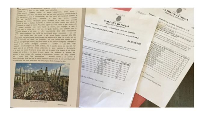 Il risultato é frutto dell’impegno dell’amministrazione comunale di Nola che, con una delibera di indirizzo  proposta il primo settembre dall’assessore alla cultura Cinzia Trinchese, ha dato il via libera alla partecipazione di Nola al Word Tourism Event. Il 22 agosto il consiglio comunale di Nola ha anche aderito all’associazione delle città italiane Patrimonio Unesco inaugurando così l’ingresso nel sodalizio della prima città espressione di un bene culturale immateriale.