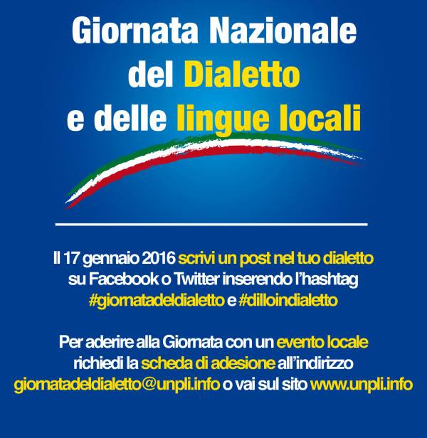 Domenica 17 Gennaio saranno centinaia le attività organizzate nei vari centri italiani a favore della “Giornata nazionale del dialetto e delle lingue locali” : rappresentazioni teatrali, letture, canti, interpretazioni di poesie, raccolta di libri, giochi, fumetti, musica e filastrocche. Gli eventi sono stati organizzati da Pro Loco, Comuni, Associazioni culturali, Biblioteche e tutte quelle realtà che si adoperano per la tutela e la salvaguardia dei patrimoni immateriali. In Campania tra le iniziative previste segnaliamo quelle di Macerata Campania (CE), Pontecagnano Faiano (SA), Lacedonia (AV) ed una un po’ particolare che si svolgerà sul portale infocilento.it dove per l’intera giornata di domenica verranno pubblicati una serie di articoli a carattere culturale con la relativa traduzione in dialetto cilentano; è possibile consultare l’elenco completo delle attività al link http://www.unioneproloco.it/unpli/?page_id=3284