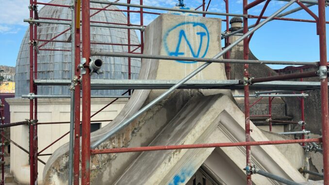 Napoli – Tentava di lasciare la sua “firma artistica” sulla storica facciata della chiesa di San Giovanni Battista delle Monache, situata a due passi da Piazza Bellini, ma la sua “performance” è stata interrotta sul nascere grazie all’intervento dei carabinieri. Protagonista di questo episodio insolito un uomo di 49 anni, milanese d’origine, che ha pensato bene di trasformare un monumento sacro in una tela improvvisata con una semplice bomboletta spray.