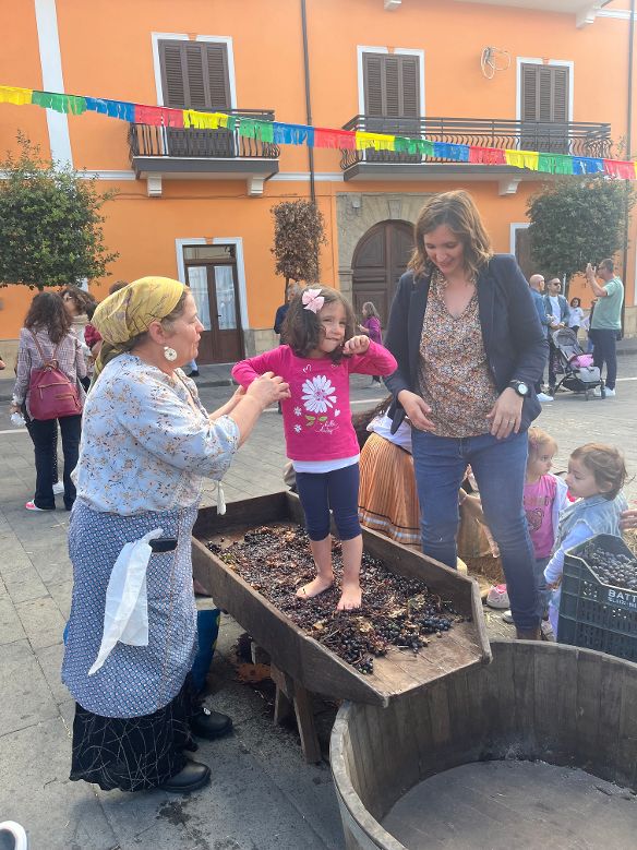 Non sono mancate le attività ludiche e didattiche, che hanno reso la giornata ancora più speciale: grandi e piccini si sono cimentati in giochi antichi come la corsa nei sacchi e il tiro alla fune, divertendosi insieme in uno spirito di condivisione. Uno dei momenti più attesi è stato la tradizionale pigiatura dell’uva, che ha permesso ai partecipanti di sperimentare in prima persona uno dei gesti più antichi della vendemmia.