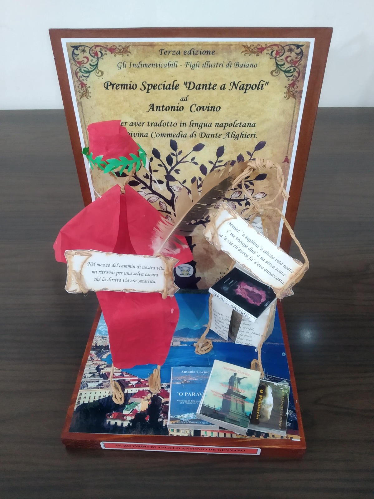Un esempio per tutti è il trofeo per il premio speciale «Dante a Napoli» che è stato consegnato al poeta e scrittore Antonio Covino di Napoli, che ha riscritto e pubblicato in lingua napoletana le tre cantiche della Divina Commedia. Opera immensa e di elevato spessore, frutto di quattro anni di duro lavoro.