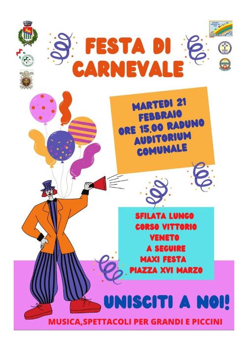 Martedì 21 febbraio tutti in Piazza XVI Marzo per la “Festa di Carnevale” organizzata dal Comune di Grottaminarda: musica, spettacoli per grandi e piccini, coriandoli, divertimento ma soprattutto maschere.