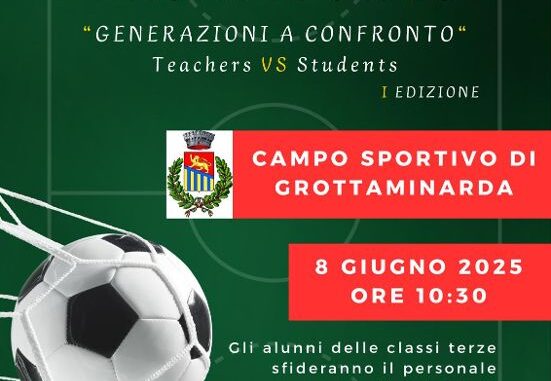 Domenica 8 giugno, alle ore 10:30, al campo sportivo “Massimo Romano” di Grottaminarda, la I Edizione di “Generazioni a Confronto”, in campo: Students VS Teachers.