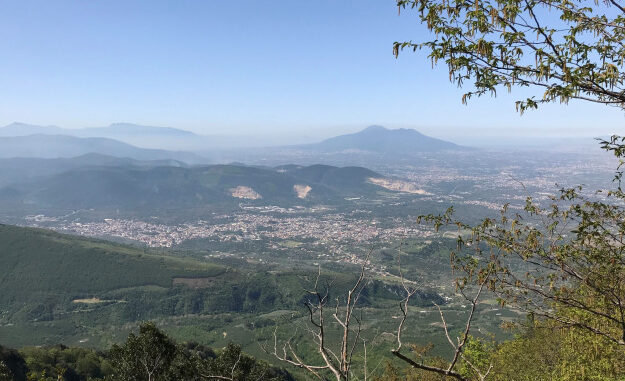 È con alcuni versi dell’Aeropoema di Emilio Buccafusca, elogiato all’unanimità negli ambienti letterari poetici e futuristi del 1937, che salutiamo le formazioni vulcaniche del Golfo di Napoli visibili dalle creste di Avella. Cantato anche da Virgilio, che pose nel promontorio citato il tumulo funerario del trombettiere di Enea (chiamato, per l’appunto, Miseno) e che si trova alla fine della sottile striscia di terra che separa il mare da uno dei numerosi laghi costieri della zona, Buccafusca lo vide contrapporsi al Monte Epomeo d’Ischia, anche questo d’origine vulcanica. Oltre i Campi Flegrei il dolce profilo di Napoli prosegue ben visibile con la collina di San Martino, i Camaldoli più in alto, il panorama si estende poi e abbraccia una zona ben più ampia, andando senza problemi dalla costiera sorrentina alla provincia di Caserta e oltre, a seconda dei punti di osservazione.
