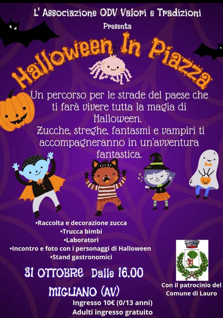 L’Associazione ODV Valori e Tradizioni presenta un evento imperdibile per grandi e piccini: Halloween in Piazza! Il 31 ottobre, a partire dalle ore 16:00, il borgo di Migliano di Lauro (AV) si trasformerà in un magico percorso immerso nell’atmosfera più spaventosa e divertente dell’anno.
