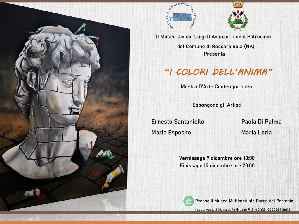 Il Museo Civico “Luigi D’Avanzo” di Roccarainola, con il patrocinio del Comune, è lieto di presentare la straordinaria mostra d’arte “I Colori dell’Anima”. Un’esperienza artistica unica che riunisce quattro talentuosi artisti: Ernesto Santaniello, Paola Di Palma, Maria Esposito e Maria Loria.
