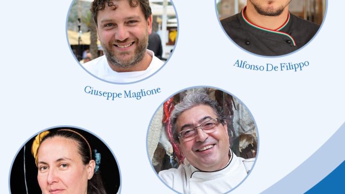 Quattro gli autori che firmeranno il menu rigorosamente a base di baccalà, ingrediente caro alla cucina popolare: Giuseppe Maglione, Antonio Ruggiero, Alfonso De Filippo e Carmen Vecchione. Per questa occasione Giuseppe Maglione, nei panni del perfetto pizzachef padrone di casa, delizierà gli ospiti con tranci di pizze al “mantecato di baccalà, olive disidratate e scarola fresca”, “caponata di baccalà con pomodorini gialli e rossi e asparago selvatico” e “papaccella napoletana e baccalà”. Un mix di sapori che trovano nella freschezza del baccalà un pendant perfetto. Direttamente dalla cucina del suo ristorante, Antonio Ruggiero presenterà il famoso “Fil di ferro”, un primo piatto “pre-al dente”, fiore all’occhiello della sua Osteria. Sarà poi il turno di Alfonso De Filippo che, per un secondo piatto davvero estasiante, preparerà del “baccalà in cassuola alla siciliana”. Unica donna del quartetto, Carmen Vecchione, sulla scia dei suoi colleghi, sorprenderà gli ospiti con un dessert al baccalà che rivelerà la flessibilità dell’ingrediente principe ad adattarsi alle ricette più estrose. Un evento questo che desidera ridare giusto valore a un ingrediente considerato un piatto povero ma che negli ultimi anni sta tornando alla ribalta nelle cucine di rinomati chef che diffondono la cultura del buon baccalà, grazie a rivisitazioni moderne e all’esaltazione del suo gusto naturale.