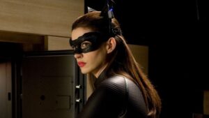 Altro personaggio di spicco è la Catwoman/Selina Kyle di Anne Hathaway, la quale non fa affatto rimpiangere la Pfeiffer (che vestì i panni della gatta ladra nel film “Batman – Il ritorno” del 1992); anzi, a dirla tutta il suo personaggio, pur non avendo lo stesso background della versione degli anni 90’, risulta essere ancor più sensuale.