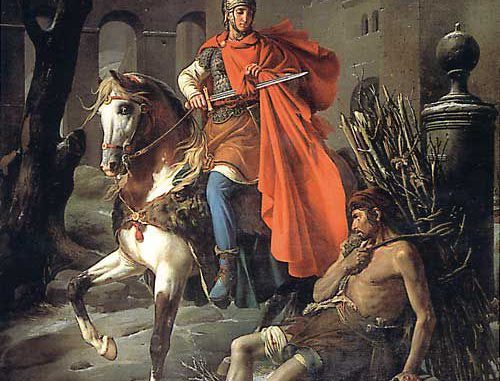 Martino di Tours, soldato romano, vede un mendicante tremare dal freddo. Prende la spada e divide il suo mantello in due.