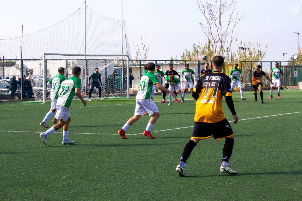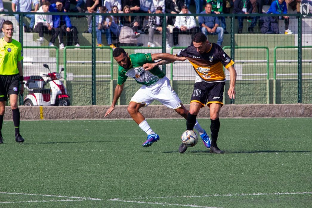 Oltre 60 minuti in inferiorità numerica, sotto di un gol, eppure il Nola non muore mai. A Forio, nella sfida tra i fratelli Sanchez in panchina, va in scena una gara infuocata che alla fine non porta il Nola alla vittoria ma segna il suo ventiduesimo risultato utile consecutivo. Comincia forte proprio la squadra bianconera che dopo un solo minuto colpisce il palo con un colpo di testa di Pozzebon. Il Forio, dopo la paura, si riassesta e trova il vantaggio dopo 12′: palla in profondità per Filosa che si incunea in area, Sorrentino salva in uscita ma la palla finisce sui piedi di Arrulo che segna a porta vuota. Lo stesso numero 4 isolano potrebbe trovare anche la doppietta 3′ dopo ma la difesa del Nola salva. Al 25′ reazione Nola: palla a Longobardi al limite dell’area, stop e tiro a giro, la sfera però va di poco a lato. Al 29′ l’episodio che cambia l’inerzia della gara: contropiede del Forio, palla in profondità e intervento di Esperimento, per il direttore di gara il tocco è col braccio e arriva il secondo giallo per il difensore nolano. Nola in dieci e gara in salita. Per la restante parte di primo tempo il match non regala molte emozioni ma nella seconda frazione il ritmo sale. Dopo 10′ il Forio fa paura con un’incursione dalla sinistra ma la conclusione finale va sull’esterno della rete. Al 59′ triangolazione perfetta in area del Nola e cross al centro per Francesco Esposito: il “ninja” non perdona ed è 1-1. A questo punto la gara cambia e il Nola sembra anche in grado di vincerla. Al 75′ ennesima incursione di Dell’Orfanello che si assist di Pozzebon cerca il gol di testa ma Iandoli è bravo e smanaccia. Il Nola spinge nonostante l’inferiorità, il Forio cerca in contropiede di fare male. Allo scadere, nel recupero, arriva anche il doppio giallo per Boussada che lascia per qualche secondo il Forio in dieci. Ottimo risultato per il Nola che continua la rincorsa alle parti nobili della classifica. Adesso, da terza, ospiterà in casa la Puteolana in una gara importante per il momento della stagione.