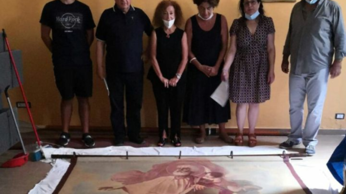 Ritorna restaurato il Panno di San Matteo al Duomo di Salerno. La consegna al parroco don Michele Pecoraro è stata effettuata dalla restauratrice Daniela Mellone della RE.CO.ART di Montecorvino Rovella (SA), ditta accreditata dalla Soprintendenza ABAP di Salerno e Avellino diretta da Francesca Casule.