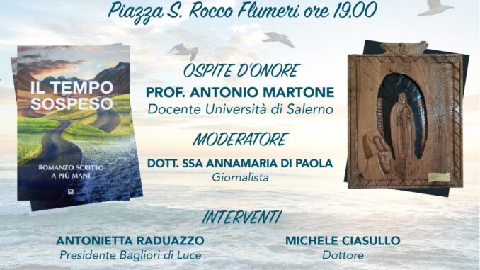 La quarantena diventa un romanzo. Un “tempo sospeso” in cui ansie e riflessioni, ricerca di senso e scoperta del vero sé si mescolano per trovare una rinnovata dimensione interiore. Mercoledi 12 agosto in piazza San Rocco alle 19.00 sarà presentato il libro “Il tempo sospeso”. L’iniziativa, patrocinata dal Comune di Flumeri, è stata voluta dall’organizzazione di volontariato “Bagliori di Luce” presieduta da Antonietta Raduazzo. L’occasione è nata dall’idea di organizzare una serata di volontariato a servizio della cultura. Sarà presentata infatti anche una scultura lignea che raffigura la Madonna di Lourdes ed è stata realizzata dallo scultore Francesco Monaco. “Il tempo sospeso” è un romanzo scritto a più mani voluto da Adriana Pedicini, presidente dell’associazione Auser di Benevento, per «rendere proficue e meno angosciose le ore da trascorrere in casa nel tempo della pandemia, affinchè non si chiudessero le porte della speranza, ma i giorni fossero utilizzati a rendere tutti più consapevoli del senso da dare alla vita» ha affermato Giuliana Caputo. Con lei hanno lavorato al testo Adriana Pedicini, Graziella Bergantino, Giulio Maria Miele, Giovanna Raveruzzi, Lidia Santoro. Una storia di vita raccontata ed esperita durante le settimane del lockdown tra i mesi di marzo e maggio 2020. La protagonista, Emma, compie un viaggio nell’entroterra meridionale. Un ritorno alle proprie origini, al proprio passato, alla ricerca del vero e soprattutto di una leva da cui riprogrammare l’esistenza con rinnovato spirito di gratitudine verso la vita medesima. Così com’è, soprattutto attraverso le persone che ci sono accanto. «Il romanzo ondeggia tra memoria e fantasia, ma quantomai attuale e reale è l’atmosfera che grava intorno alla vita di Emma, nel complicato intreccio tra amori passati e presenti, tra ansie personali e collettive – ha dichiarato Caputo – sempre alla ricerca di sé, di una sofferta, agognata rinascita». Alla presentazione del libro prenderanno parte il professore Antonio Martone, docente presso l’Università di Salerno; due tra le firme del romanzo, Giuliana Caputo e Giovanna Reveruzzi; la scrittrice Angela Iacobucci. Ancora lo scultore Francesco Monaco e il socio dell’Associazione Bartolomeo Torre. I saluti saranno affidati al sindaco di Flumeri Angelo Lanza e al parroco Don Claudio Lettieri. L’appuntamento è realizzato con la collaborazione della Protezione Civile di Flumeri e con l’Associazione R.G.P.T Carabinieri.