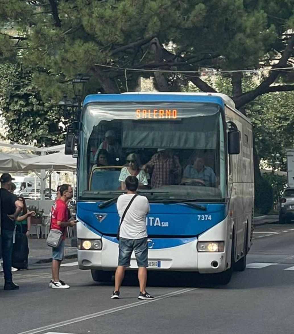 «Fammi salire». «Non posso, non ci sono posti disponibili nemmeno in piedi». «Allora ti blocco l’autobus». Questo in sintesi il dialogo tra il turista e il conducente. una protesta che poteva finire male per il turista, sicuro stava commettendo reato, ma il buon senso dei passeggeri e dell’autista hanno avuto la meglio. L’uomo è stato fatto allontanare poco dopo e il pullman ha potuto riprendere la marcia. Un segno di protesta plateale il suo come altri registrati nei giorni scorsi in costiera. Capita spesso che gruppi di persone vengano lasciati per ore sotto al sole alle fermate, impossibilitati a salire a bordo di pullman strapieni.in piena estate e con temperature altissime questa mancanza di attenzione e alla programmazione e al potenziamento delle corse lascia intendere una scarsa attenzione al servizio da parte del gestore dello stesso. E inoltre crea un grave e pesante compromissione dell immagine di accoglienza e ricettività della costiera
