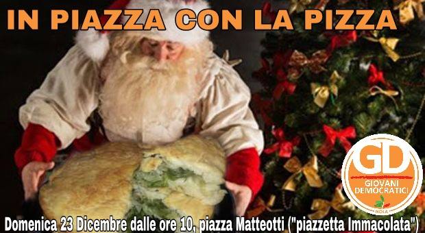 Continuando una tradizione di ormai quattro anni, il circolo della giovanile democratica unisce al momento di festa lo scopo benefico: sotto il gazebo, infatti, oltre agli auguri e alla possibilità di scambiare liberamente considerazioni sulla situazione politica cittadina e nazionale attuale, i cittadini troveranno la pizza di scarole, tipico rustico napoletano delle feste, e una cassetta per contribuire all’acquisto di generi alimentari per la mensa della Caritas diocesana.
