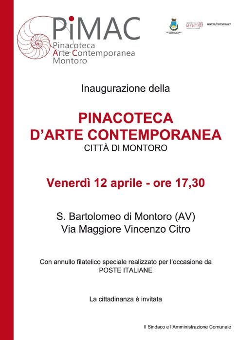 Al fine di celebrare al meglio l’inaugurazione della PINACOTECA DI ARTE CONTEMPORANEA della Città di Montoro, l’Amministrazione Comunale ha deciso di dare risalto a tale evento con l’attivazione di un Servizio Filatelico Temporaneo operato da Poste Italiane, per la giornata del 12 aprile 2024. Durante tale servizio, gli operatori di Poste Italiane potranno apporre, su documenti regolarmente affrancati, il bollo speciale realizzato per l’occasione.