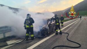 I Vigili del Fuoco di Avellino alle ore 17’50 di oggi 29 marzo, sono intervenuti sull’autostrada A16 Napoli -Canosa, nel territorio del comune di Monteforte Irpino al Km. 38 in direzione Canosa, per un incendio che ha riguardato un’autovettura in transito. Le fiamme che hanno avvolto il veicolo sono state spente mettendo in sicurezza l’area. A bordo dell’auto una famiglia originaria della provincia di Potenza, composta da marito moglie e una figlia, che oltre un comprensibile spavento non hanno subito conseguenze.
