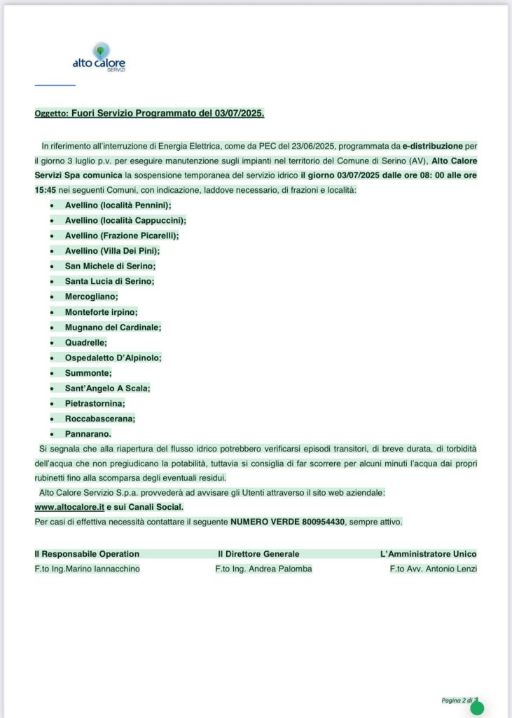 L’azienda informerà la cittadinanza attraverso il sito ufficiale www.altocalore.it e i propri canali social. Per casi urgenti è disponibile il Numero Verde 800 954 430, attivo 24 ore su 24.