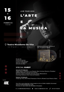 “L’arte e la musica” è il titolo del terzo album del cantautore Ivan Romano che ha scelto la sua Cervinara per presentarlo ufficialmente al pubblico con due serate, il 15 e 16 febbraio, alle 21.30, al Teatro “Nicodemo De Vito”.