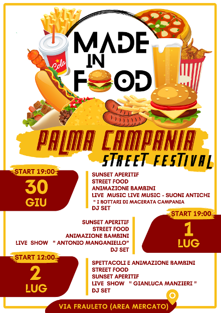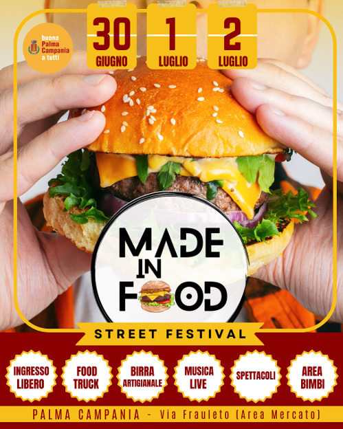 È il primo Street Festival tutto MADE IN FOOD, in collaborazione con l’associazione Buona Palma Campania. Sarà un weekend all’insegna di ottimo cibo di strada, birre artigianali locali e regionali e tanto divertimento con musica live e dj set ma anche spettacoli e animazione riservati ai più piccoli.