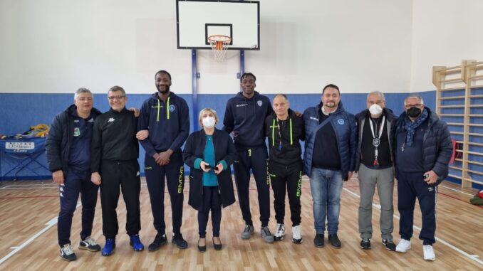 Il responsabile marketing e social media manager gialloblù Mario Di Capua, deus ex machina di queste iniziative a sfondo sociale, ha portato con sé in terra sarnese anche gli atleti Iris Ikangi e Joseph Mobio, che hanno mandato in visibilio i tantissimi alunni della scuola diretta dalla prof.ssa Antonella Esposito, che hanno preso parte attivamente alla lezione di scienze motorie e ai lieti momenti di condivisione e partecipazione che hanno poi fatto seguito al momento formativo, come la consegna di una targa commemorativa e di ringraziamento che la padrona di casa ha consegnato alla rappresentanza scafatese per la gradita partecipazione. Quest’ultima ha poi voluto ricambiare l’ospitalità, consegnando alla dirigente scolastica una maglia da gara ufficiale con la scritta “I. C. G. Amendola” sulle spalle, quattro palloni da minibasket e numerosi gadget griffati Givova per i tanti bambini presenti.