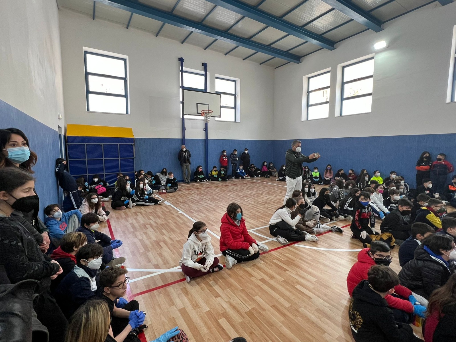 Continuano a spron battuto le iniziative che vedono coinvolta la Givova Scafati nel sociale. Dopo quelle realizzate con l’Istituto Comprensivo “Pulcarelli” di Massa Lubrense (Na) e con l’Istituto Comprensivo “De Amicis – Baccelli” di Sarno (Sa), stavolta è toccato agli alunni dell’Istituto Comprensivo “G. Amendola” di Sarno (Sa) incontrare i propri beniamini in una occasione ed un contesto speciale. Ieri mattina, infatti, hanno ospitato nella palestra del loro istituto scolastico, recentemente ristrutturata ed intitolata al compianto avv. Gaetano Ferrentino (già vicesindaco del Comune di Sarno, uomo di legge e di sport), una rappresentanza del team gialloblù.